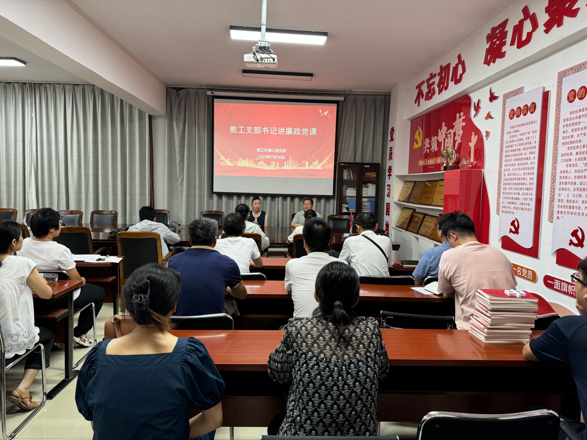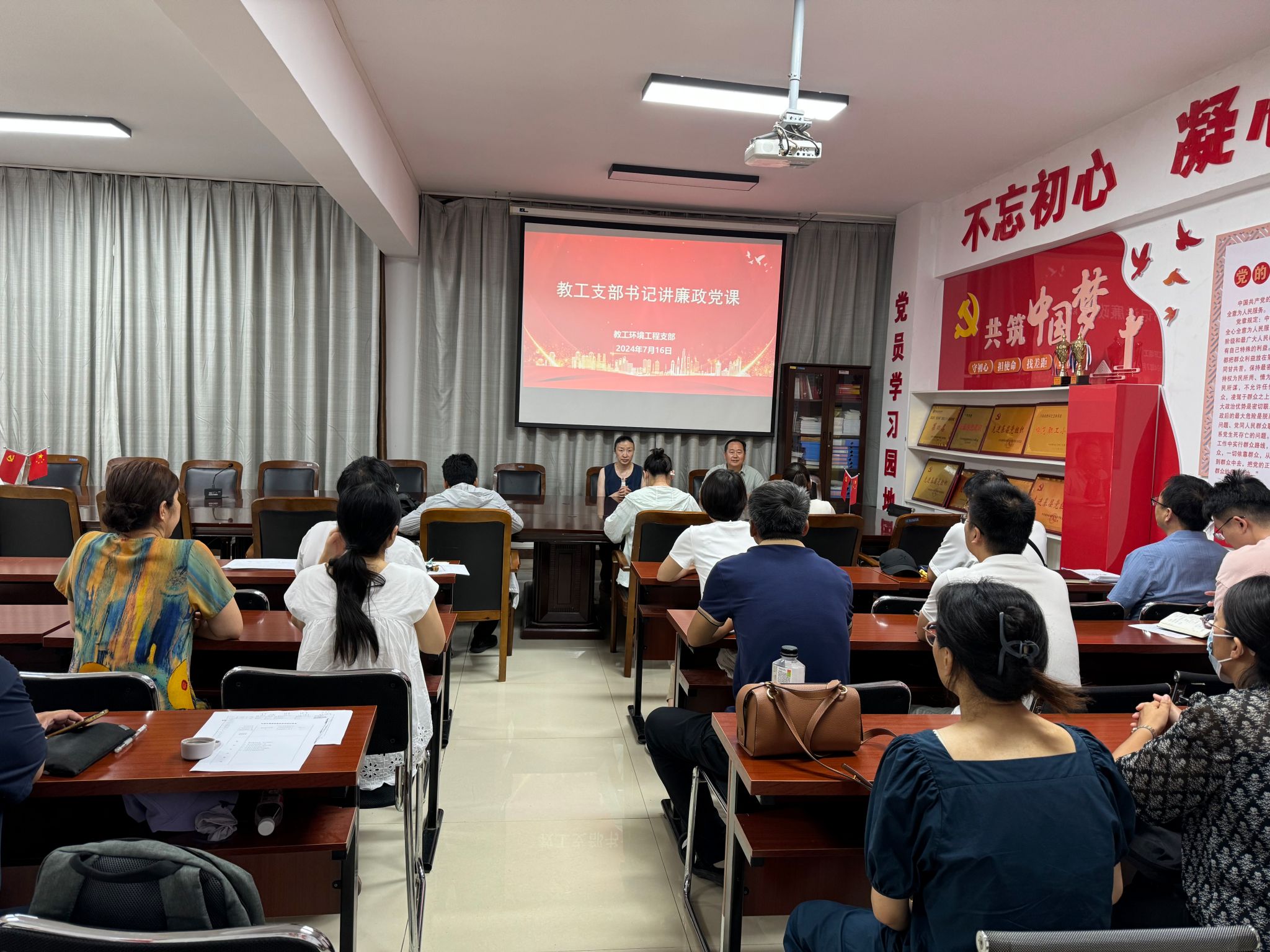 为加强教工支部的党风廉政建设及深入开展《中国共产党纪律处分条例》专题学习,7月16日,教工环境工程支部在5405会议室召开教工环境工程支部书记讲廉政党课活动,全体教工党员参加。