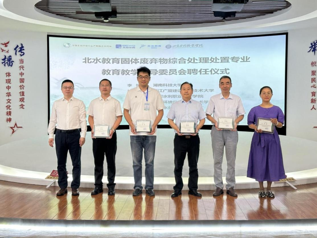 作为全国生态环保行业产教融合共同体的主要发起单位,校长胡昊在会上介绍了我校在产教融合、科教融汇方面的扎实举措和良好成效。胡昊校长围绕深化产教融合、构建高效运行机制、优化服务保障及引领行业发展等议题,提出“四个持续”建议,即持续打造优质平台,汇聚政行校企多方力量;持续完善监管机制,激发创新活力;持续强化服务,共促人才培养与科研创新;持续引领国内外发展,制定标准、编写教材,推动职业教育国际化。会上我校姚新鼎教授被共同体聘为智慧水务、固体废弃物综合处理处置教育教学指导委员会委员。