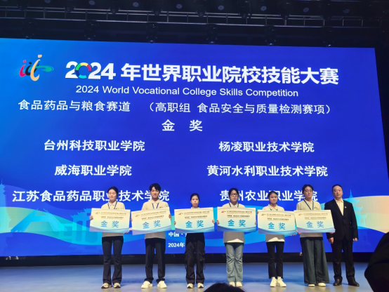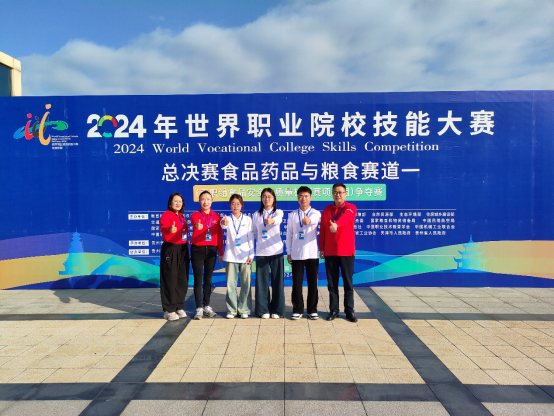 10月26日至10月30日,2024年世界职业院校技能大赛总决赛争夺赛高职组食品药品与粮食赛道一食品安全与质量检测赛项在贵州农业职业技术学院举办,本次大赛主题为“技炫青春,能创未来”,来自全国各省(直辖市、自治区)的61支队伍同台竞技,经过激烈角逐最终落下帷幕。由我校环境工程学院教师申森、郑黎静指导,食品质量与安全专业学生孟荣雨、朱新新、陆家顺组成的竞赛团队脱颖而出,勇夺金奖。