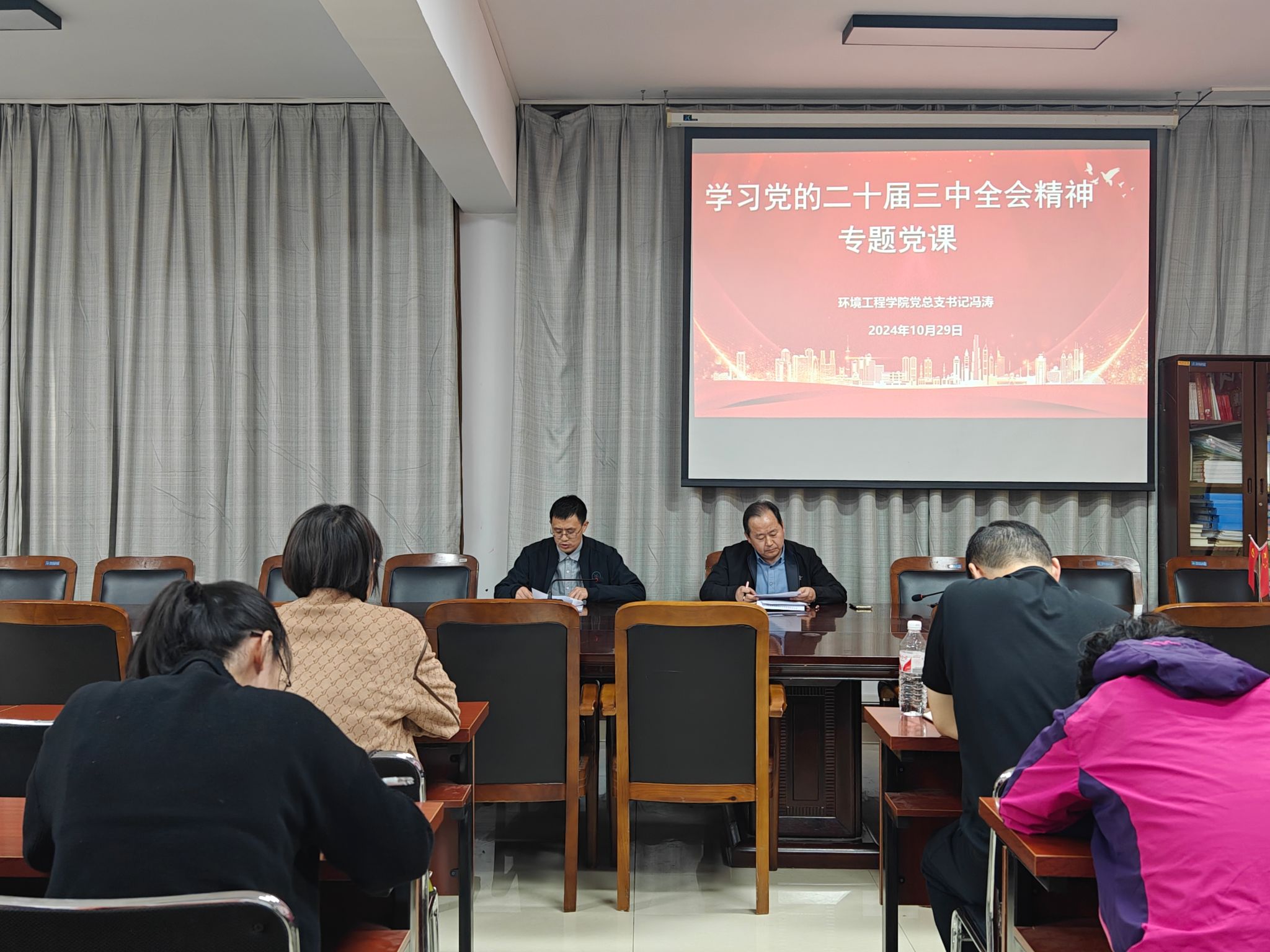 为提高党员教师对党的二十届三中全会精神的认识,切实将思想和行动统一到党中央的决策部署上来,10月29日下午,学院党总支书记冯涛为全体教师讲授了《学习贯彻党的二十届三中全会精神推动学院高质量发展》专题党课。