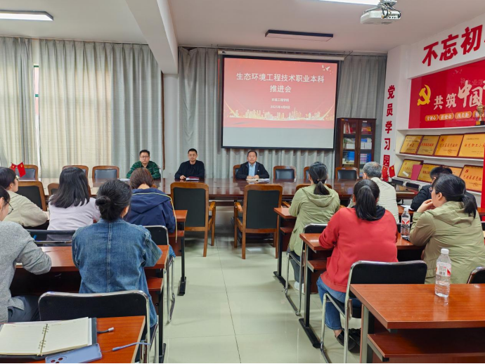 2025年4月8日下午,环境工程学院在SY5405会议室召开生态环境工程技术职业本科建设工作推进会,学院党总支书记冯涛、副院长姚新鼎及生态环境工程技术教学团队参会,会议由副院长王海烽主持。