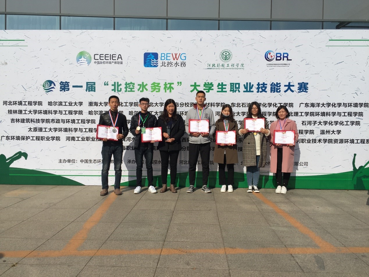 2019年10月26日-27日,第一届“北控水务杯”大学生职业技能大赛在河北环境工程学院举行,此次比赛有来自全国各本科和高职院校共50支代表队参赛。经过前期的努力训练,我院环境保护教研室派出一支队伍参赛,该参赛队由魏家红老师担任领队,耿悦、李华北为指导老师,带领17级环境工程技术专业曹剑波、鲁振、刘梦娜和李琼琼四位同学参加比赛。经过激烈角逐,我院代表队荣获第一届“北控水务杯”大学生职业技能大赛二等奖。