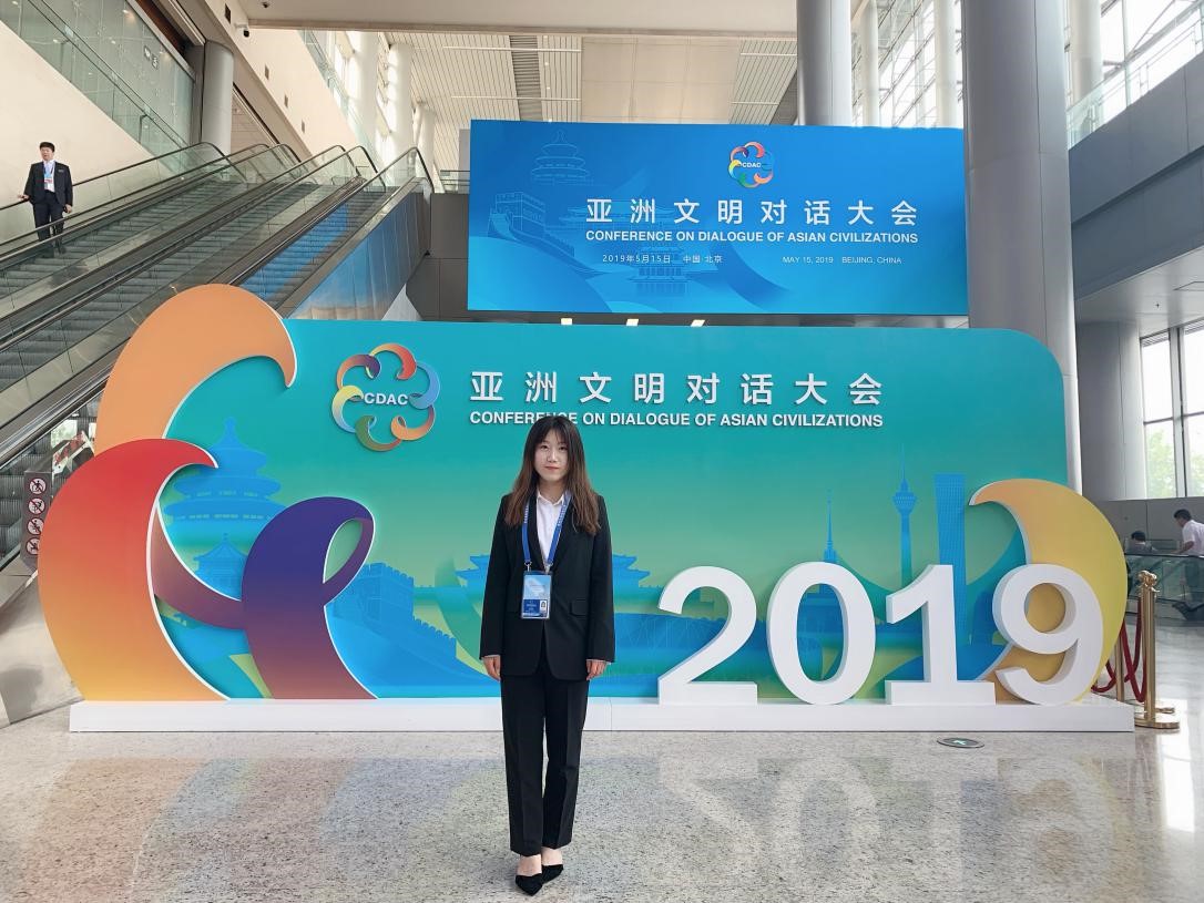 2019年5月15日“亚洲文明对话大会”在北京拉开帷幕,我院环境工程专业教师杜凌楠由于专业技能过硬、外语水平较高,被教育部选中借调到教育部中外人文交流中心工作,本次作为工作人员有幸参加亚洲文明对话大会的“维护亚洲文明多样性”分论坛。大会筹备委员会由中共中央宣传部、外交部、文化和旅游部、北京市等多个部门共同组成,本次大会还得到联合国教科文组织等国际组织的支持和参与。