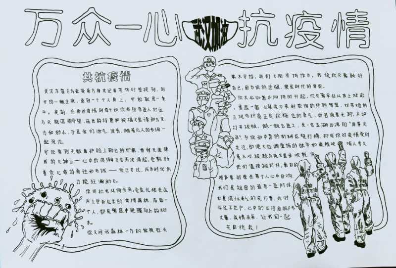 该征文活动面向环境工程学院全体教师。活动刚一拉开帷幕,各基层教学组织积极参加,共上交十余份作品。大家图文并茂地用彩笔手绘或者用电脑制作出了精美的手抄报,以此来致敬“疫”线英雄,传播战“疫”正能量。通过精心挑选和评选,评出了优秀作品6幅。