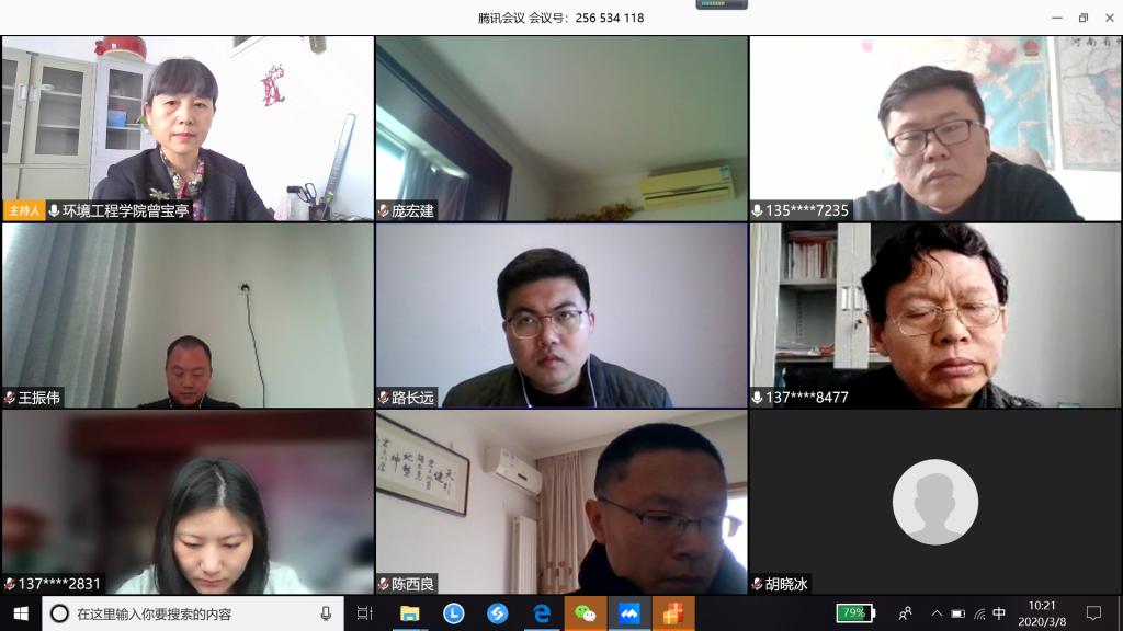 为进一步贯彻落实《黄河水利职业技术学院关于疫情防控期间延长线上教学组织的通知》(黄院教【2020】05号)以及《环境工程学院关于疫情防控期间临时班主任工作实施办法》,3月8日上午,我院召开疫情防控期间线上教学和临时班主任工作推进视频会议,会议由院党总支书记王国英主持,副院长张尧旺、王振伟,副书记曾宝亭及全体教职工参加了此次会议。