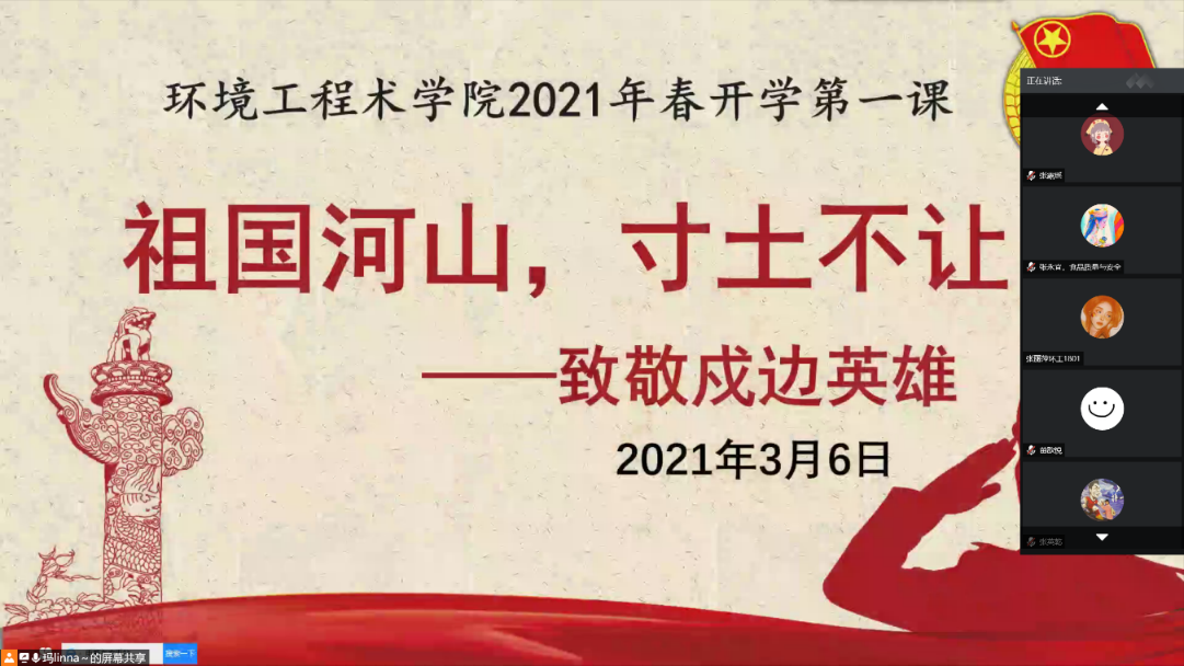 环境工程学院领导班子明确责任,细化工作方案,引导全院教师扎实做好春季开学思政第一课工作。我院本学期理论课共33门,实践课共 22 门,授课教师共计 38 人,全体教师在开学第一课工作中严格按照学校文件要求,贯彻落实开学第一课的思政育人方案,总结课程思政教学案例,强化责任,全员参与思政育人,充分利用新时期的爱国素材,讲好时代责任,做好学生思想教育引导。