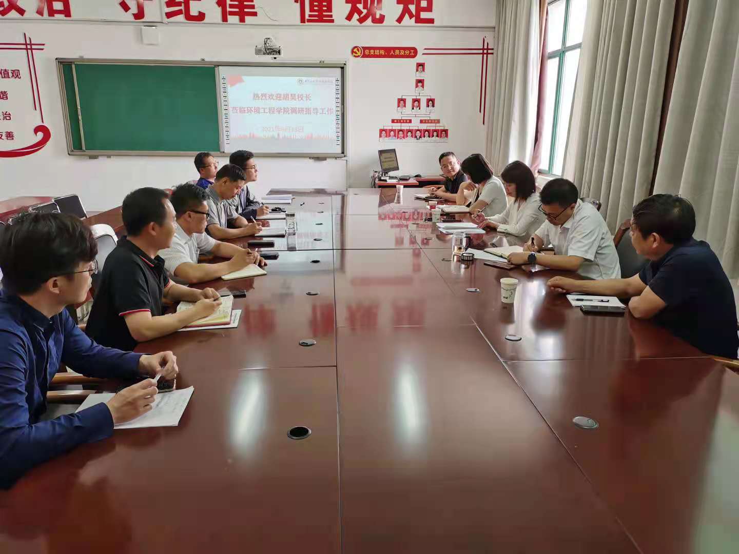 6月18日上午,校长胡昊深入环境工程学院调研指导专业发展、师资队伍建设、科研与技术服务、优势骨干专业群建设、专项建设等工作。副校长焦爱萍、科技处处长杨中华、发展规划处处长马晓慧、教务处处长薛建荣、副处长赵信峰、党政办副主任王忠伟一行陪同调研。环境工程学院党总支书记王国英、副院长(主持工作)张尧旺、副院长王振伟以及专业带头人、专业骨干教师参加了调研座谈。