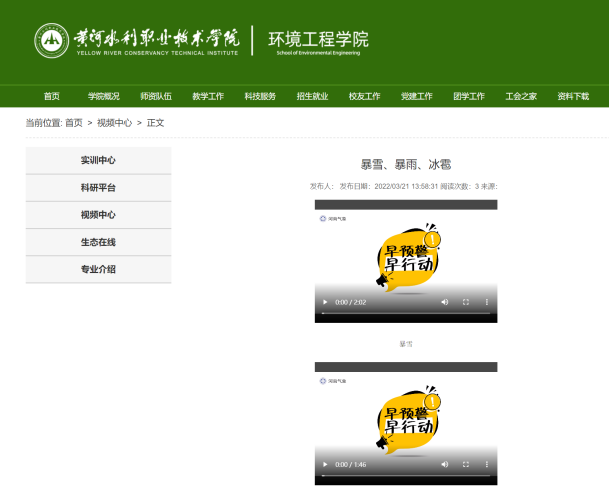根据《河南省人民政府办公厅关于开展 2022 年世界气象日科普宣传活动提高全社会气象防灾减灾意识的通知》、《河南省教育厅办公室转发省政府办公厅关于开展 2022 年世界气象日科普宣传活动提高全社会气象防灾减灾意识的通知》等文件精神,校团委、环境工程学院、水利工程学院开展了丰富多彩的科普宣传活动。生态环境修复技术、环境监测技术、环境工程技术、水利水电工程、水文水资源、水文与工程地质、水土保持工程等相关专业共2000余名学生参与了此次活动。