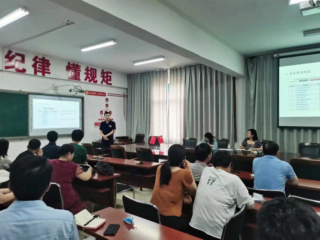 为进一步剖析专业发展现状,挖掘专业现有潜力,厘清专业发展思路,拓宽学科建设路径,优化人才培养质量,助力专业影响力稳中有进,不断提升产学研一体化目标,6月21日,环境工程学院开展专业负责人“说专业”活动。环境工程技术、生态环境修复技术、环境监测技术和食品质量与安全等四个专业负责人分别结合专业排名现状、存在短板、提升措施、发展规划、课程资源建设等内容开展“说专业”活动,该活动由院长冯峰主持,学院全体教师参加。