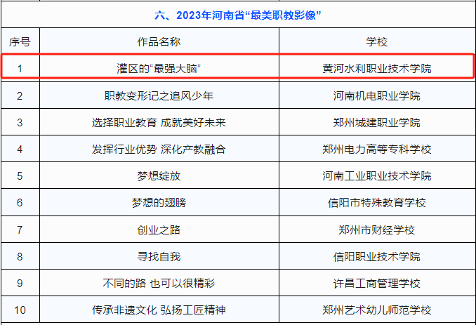 为深入贯彻党的二十大精神,认真落实习近平总书记关于职业教育的重要指示精神,全面展示我省职业教育改革发展的重要成就,营造全社会关心支持职业教育发展的良好氛围,今年,省教育厅在全省范围开展了2023年河南省“最美职教”系列宣传推介活动,共推介出2023年河南省“最美职教技术能手”10名、“最美未来工匠”10名、“最美职教品牌”10个、“最美职教影像”10个、“我的一天”视频网络日志优秀作品10个、“职校生的十八般武艺”短视频优秀作品20个,以及“最美职教技术能手”提名10名、“最美未来工匠”提名10名。