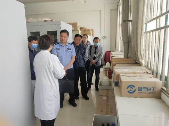 为进一步完善高校实验室安全防范体系建设和消除实验室化学品安全隐患,2020年5月12日上午,开封市公安局城乡一体化示范区分局治安管理大队高志坚警官和尚慧春警官深入我院开展实验室化学品治安防范检查工作。副院长(主持工作)张尧旺、副院长王振伟陪同检查,实训中心王哲嵘老师详细介绍了我院化学品的治安防范工作。