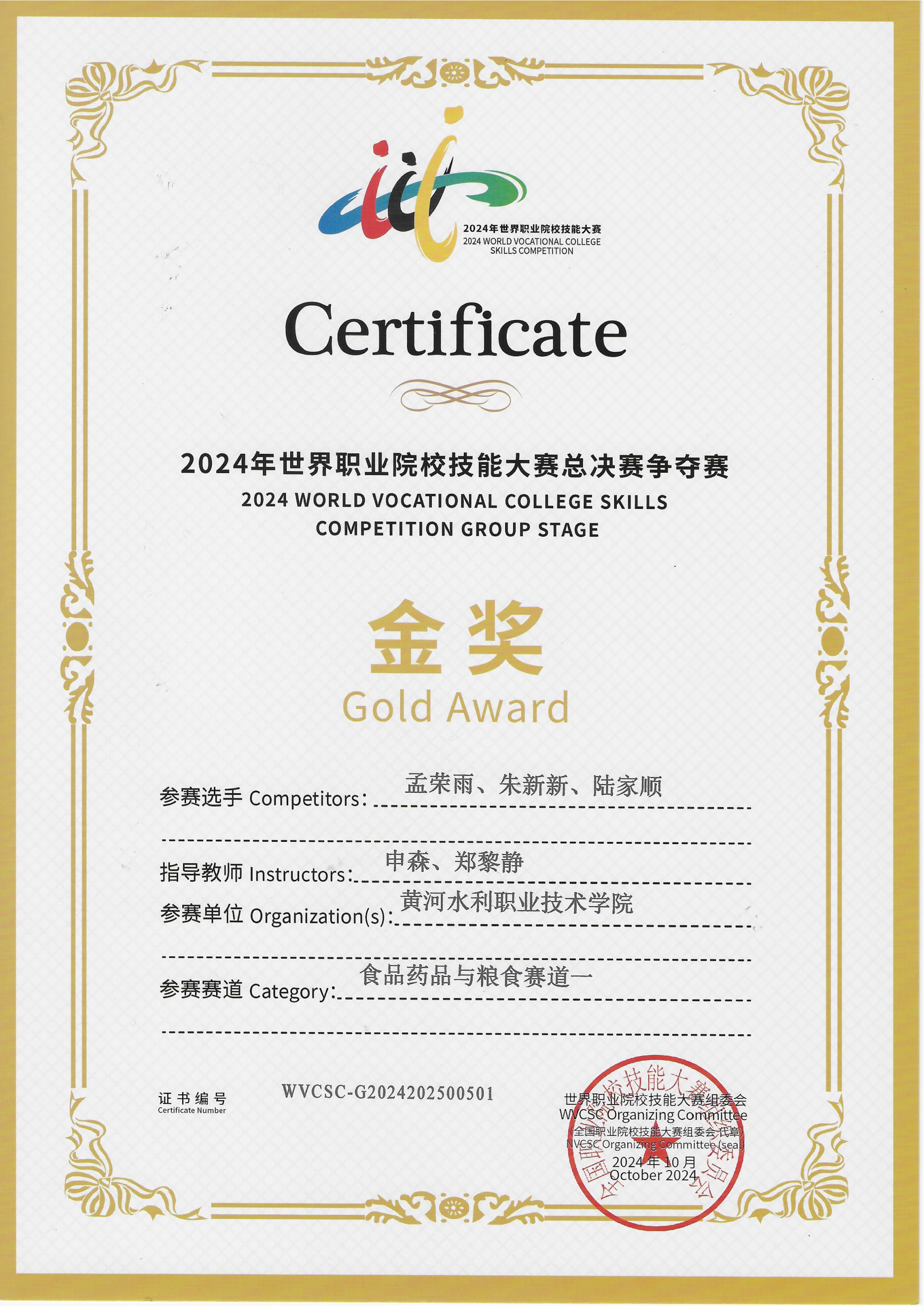 食品专业师资力量强大,专业教师全部为研究生学历,年富力强,是学生的良师益友。所有教师尽心尽责培养学生,取得了一系列的成绩:食品质量与安全专业多次在农产品质量安全检测,食品安全与质量检测、互联网+等国家级、省级学科竞赛中获奖。特别在2022年农产品质量安全检测全国大赛中获得国赛一等奖,在2024年世界职业院校技能大赛获得世赛金奖和银奖,2025年世界职业院校技能大赛获得世赛金奖和铜奖,创造了河南省参加该赛项的多个“第一”;学生专升本率一直名列前茅,许多学生继续完成研究生阶段学习,优秀毕业生取得了浙江大学、长安大学、江苏大学、河南大学等高等学府的博士或硕士学位。