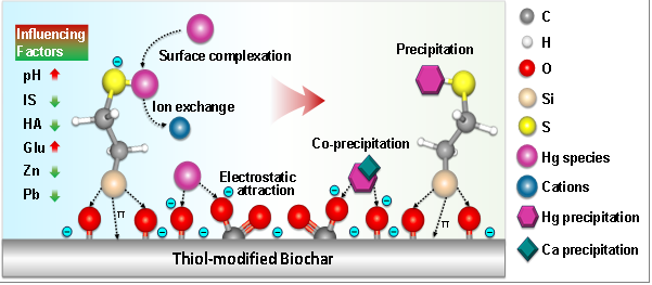 地下水汞污染严重威胁生态系统和人类健康,从高盐地下水中去除低浓度汞一直以来是棘手难题。本研究中,王宗舞博士团队证明了巯基改性生物炭(BCS)通过介导汞的形态转化实现高效率净化高盐地下水中汞的可行性,并深入阐述了净化作用的界面过程、影响因素及机理,为BCS在痕量汞污染高盐地下水修复方面应用提供新的思路与途径。