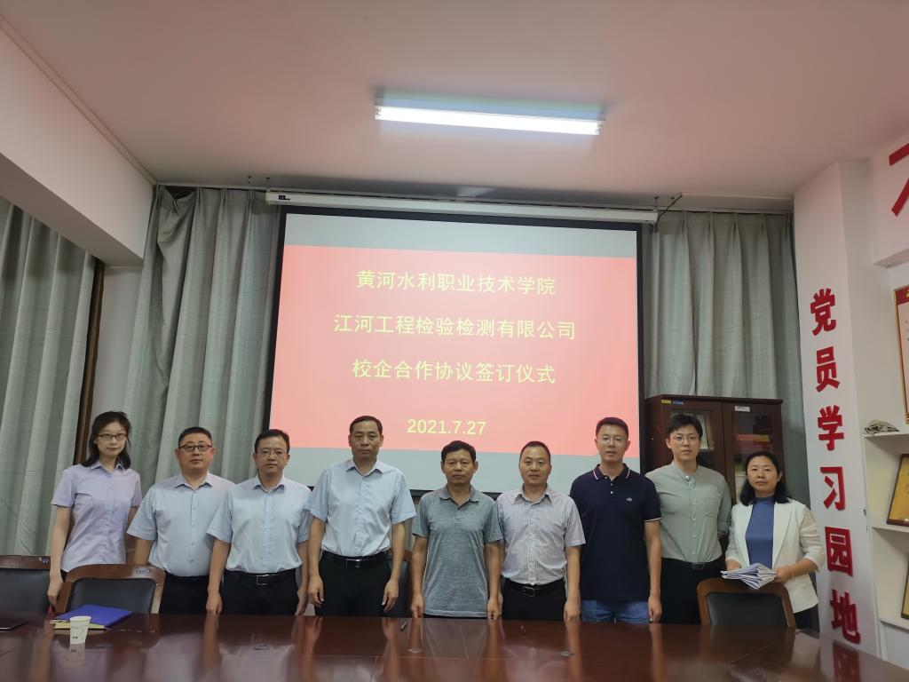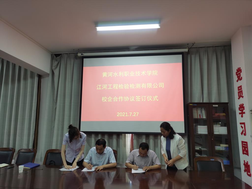 7月27日上午,我校与江河工程检验检测有限公司签订校企合作协议。江河公司总经理李省等一行人员出席仪式,环境工程学院副院长(主持工作)张尧旺、副院长王振伟和部分专业骨干教师参加了仪式,仪式由张尧旺主持。