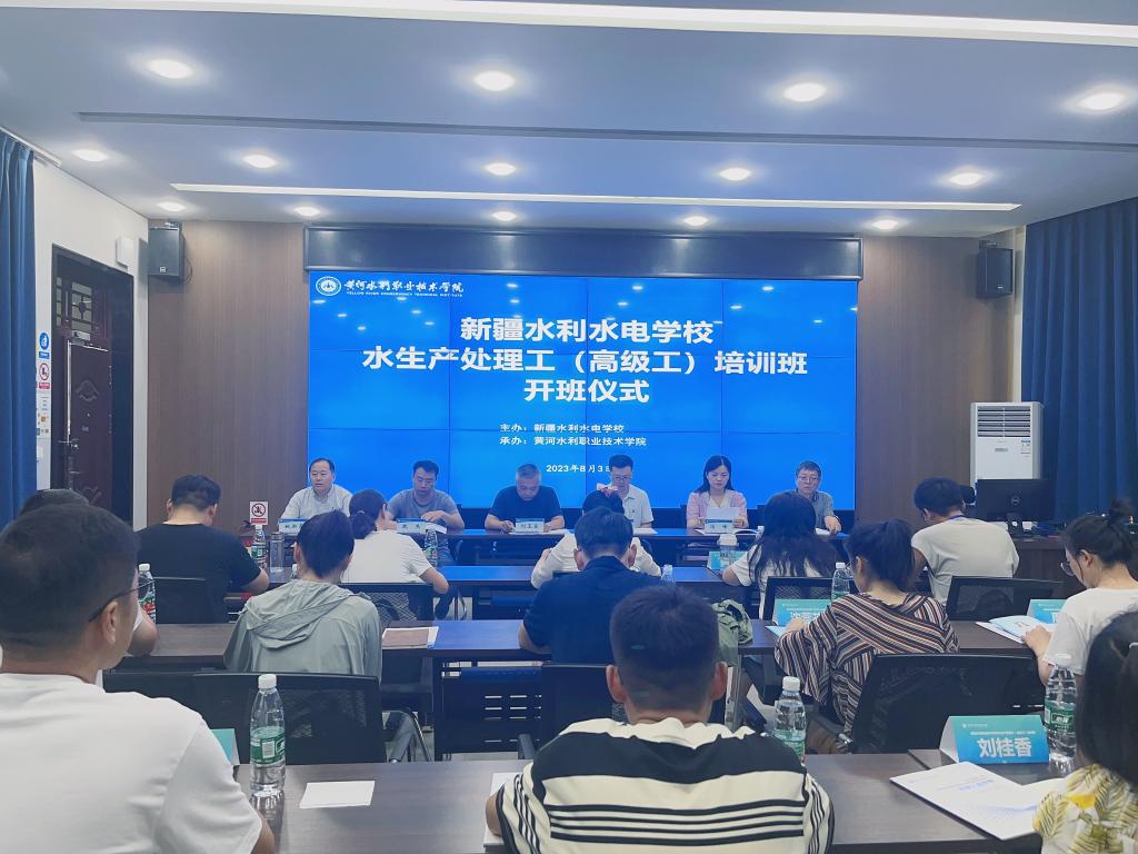 8月3日,新疆水利水电学校水生产处理工(高级)培训班在我校8号实训楼8202(2)举行,我校副校长刘玉宾,新疆水利水电学校水利系党总支书记冯济慈、系主任魏东,我校继续教育学院院长薛建荣,环境工程学院院长冯峰、副院长姚新鼎及来自新疆水利水电学校的17名骨干教师和培训班工作人员出席、参会。