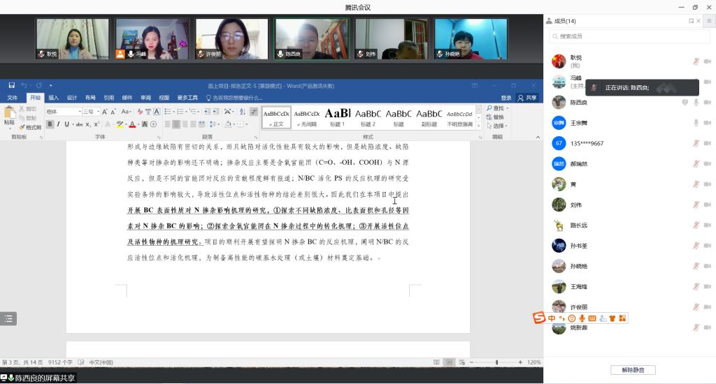 为推进我校国家自然科学基金申报工作,提高国家自然科学基金项目申报书质量和中标率,2月8日,环境工程学院通过腾讯会议召开2022年度国家自然科学基金申报推进会,会议由院长冯峰主持,学院党总支书记高琼及所有博士参加会议。