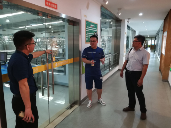 随后,在吴经理的安排下,王书记一行考察了企业的生产线和质检部门。一鸣公司良好的生产环境和规范的管理体系给王书记一行留下了深刻的印象。在生产部门还见到了我院去年在这里工作至今的毕业生陈天然同学。王书记详细咨询了陈天然在这里工作和生活的情况,鼓励他踏实学本领,为企业增效益,为学校增光采。陈天然同学对老师们的到来也十分激动,他表示会好好工作,绝不辜负老师们的期望。