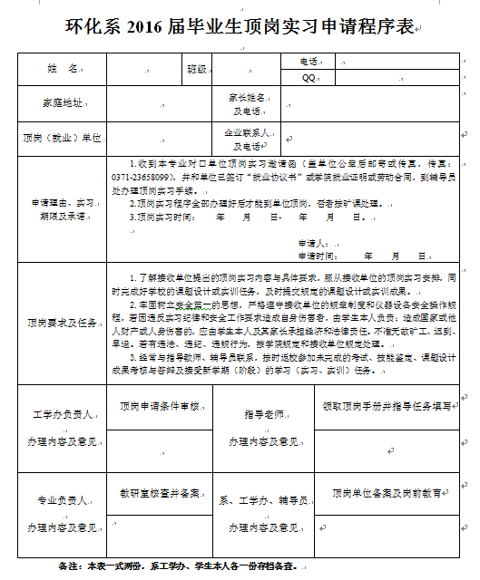 环化系毕业生顶岗实习申请程序表