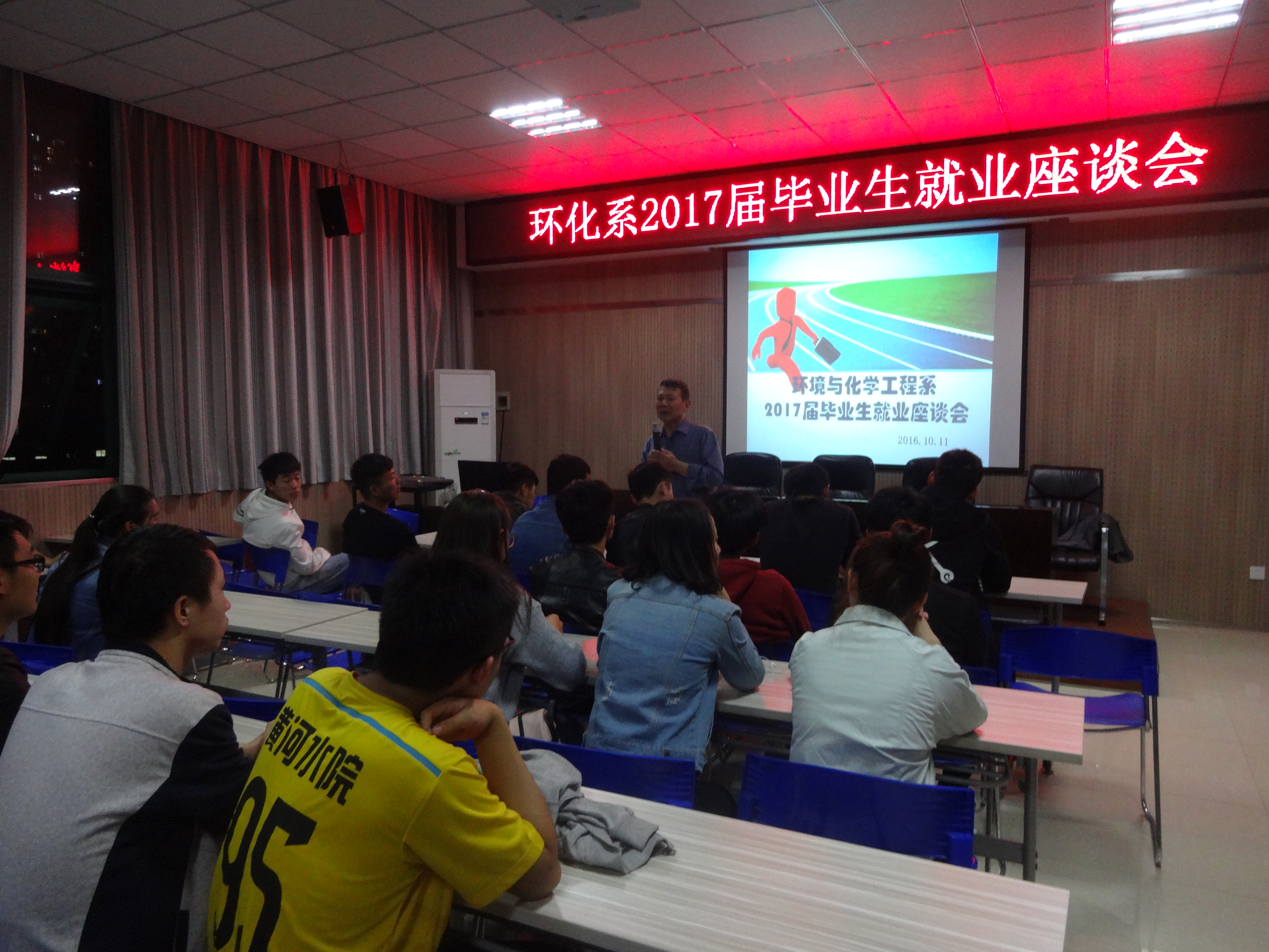 10月11日晚7点,为配合学校2017届毕业生就业双向选择洽谈会的召开,环境与化学工程系在大学生活动中心302教室召开了“就业沙龙”暨就业招聘动员会议。系领导、科级以上干部及各个教研室主任、就业负责老师、全体辅导员和环化系2017届毕业生参加了会议。
