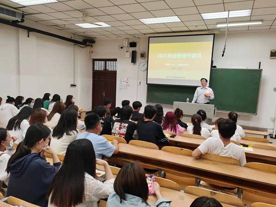 2021年5月18日,浙江一鸣食品股份有限公司人事部经理叶炼于教学楼JX2203召开专场招聘宣讲会。环境工程学院2022届食品加工技术专业和食品质量与安全专业全体毕业生及食品工程教研室教师代表参加了此次宣讲会。
