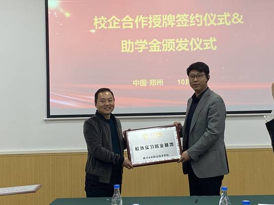 武磊副总裁与王振伟副院长完成校企合作签约,校企互授“校外实习就业基地”、“人才培养基地”牌匾。