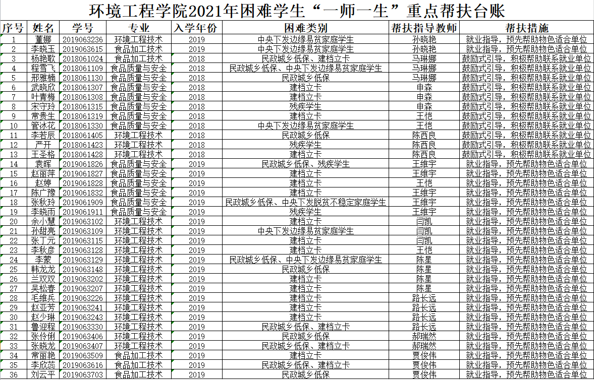 附:环境工程学院2021年困难学生“一师一生”重点帮扶台账