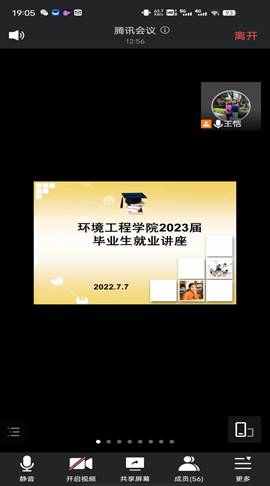 7月1日,我院2023届毕业生在通过投递简历、线上面试等流程后已经奔赴就业单位进行了就业实习期工作,一星期过去了,针对同学们在就业单位里遇到的一些诸如自身定位不准、适应环境慢、就业意识模糊等问题,为了让学生们更好地度过实习期,扎实推进环境工程学院2023届毕业生后续顺利就业,让毕业生了解当前就业环境和我校毕业生面临的就业机遇与挑战,7月7日晚上19:00,环境工程学院校企合作办主任王恺老师通过腾讯会议给学院2023届毕业生们进行了第二次就业指导讲座。