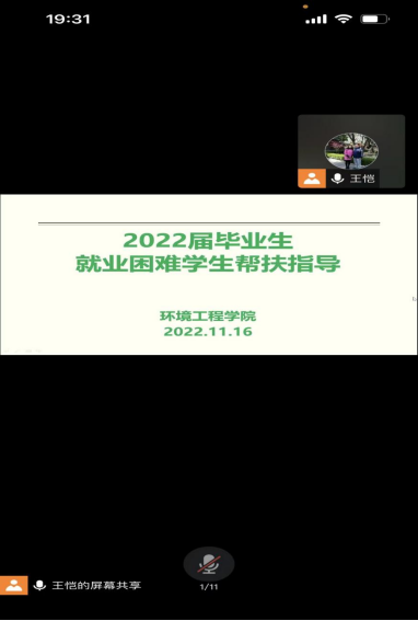 为了扎实推进环境工程学院2022届就业困难毕业生顺利就业,11月16日晚上19:00,环境工程学院校企合作办主任王恺老师通过腾讯会议给学院2022届就业困难毕业生进行了就业帮扶指导讲座。部分专业骨干教师参加了会议。