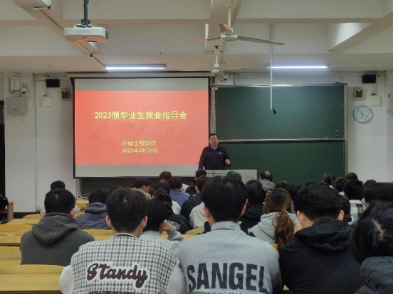 还有两个多月,环境工程学院2023届毕业生即将毕业,多数学生已经通过实习在就业单位扎稳了脚跟,部分同学专升本金榜题名,但仍有一部分困难的学生在就业求职过程中遇到了这样那样的问题,诸如自身定位不准、适应环境慢、就业意识模糊等,为了让这些就业困难的学生们顺利地就业,为了更扎实继续推进环境工程学院2023届毕业生就业工作,为了让毕业生了解当前就业环境和我校毕业生面临的就业机遇与挑战,4月24日下午,环境工程学院校企合作办主任王恺老师在JX4203给学院2023届就业困难毕业生们召开了就业指导会。