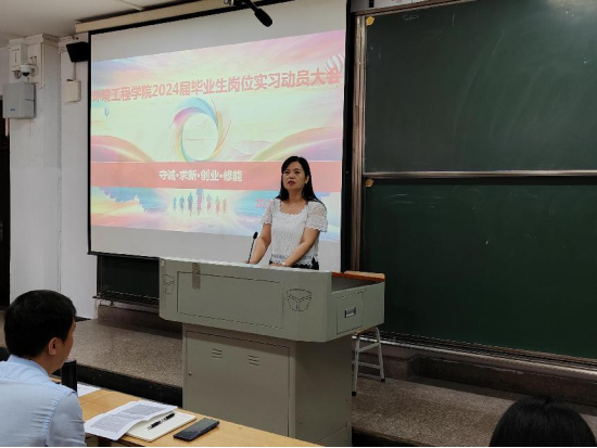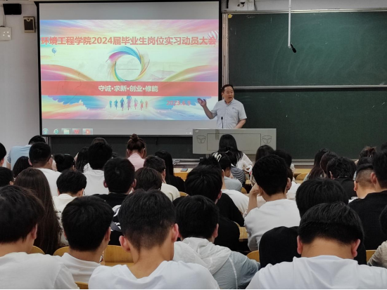 岗位实习是职业院校技能人才培养方案的重要组成部分。为进一步做好学院应届毕业生岗位实习工作,加强学生就业能力,引导学生做好职业规划,抢抓就业机遇,为毕业生高质量就业做好铺垫,环境工程学院于6月9日上午在JX6202分两场召开了2024届毕业生岗位实习动员大会。学院领导班子、专业负责人、教师代表、毕业班辅导员等参加了会议,大会由学院校企合作办公室主任王恺主持。