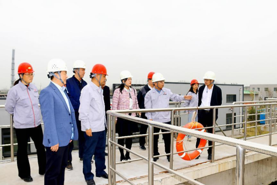 会后,在李总的陪同下,学院领导和教师实地参观了中控室、粗格栅及提升泵房、一体化生化池、消毒池、膜设备间等设施,李辉厂长详细介绍了项目概况、MBR膜处理工艺及现场管理等情况。