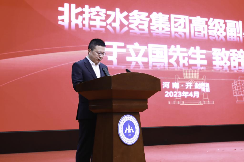 于立国高级副总裁在致辞中介绍了北控水务集团概况,以及在产教融合领域十年探索实践取得的丰硕成果,并表达了对本次合作的高度重视。他表示,期望以共建产业学院为契机,开拓校企合作领域,深化校企合作内涵,将教育深度融入产业发展中,协同发挥资源优势,全面助力生态环境职业教育进步发展。北务水控将本着“资源共享、优势互补、合作共赢、协同发展”的理念,通过多方位、深层次、综合性的合作模式,紧跟国家重大战略发展方向,服务河南省“十大战略”及黄河流域生态保护和高质量发展,立足中原,辐射全国,为建设“绿水青山、美丽中国”做出更大贡献。