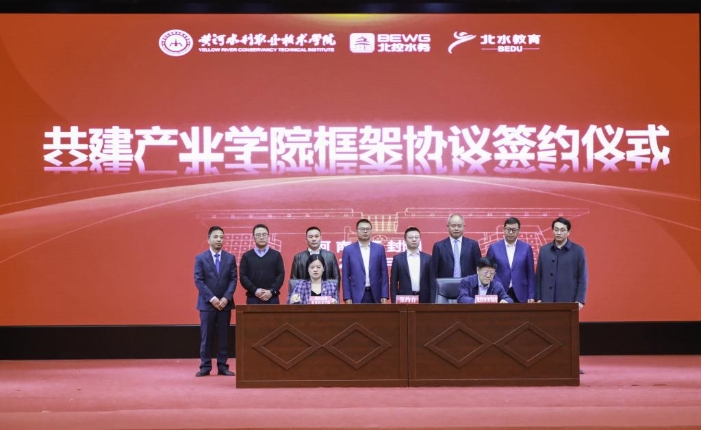 4月26日,黄河水利职业技术学院-北控水务智慧水务现代产业学院成立签约暨揭牌仪式在我校隆重举行。这是全国高职院校成立的第一家智慧水务现代产业学院,是我校与北控水务集团共同打造人才培养新高地,构建产教融合新格局的重要举措和新起点。