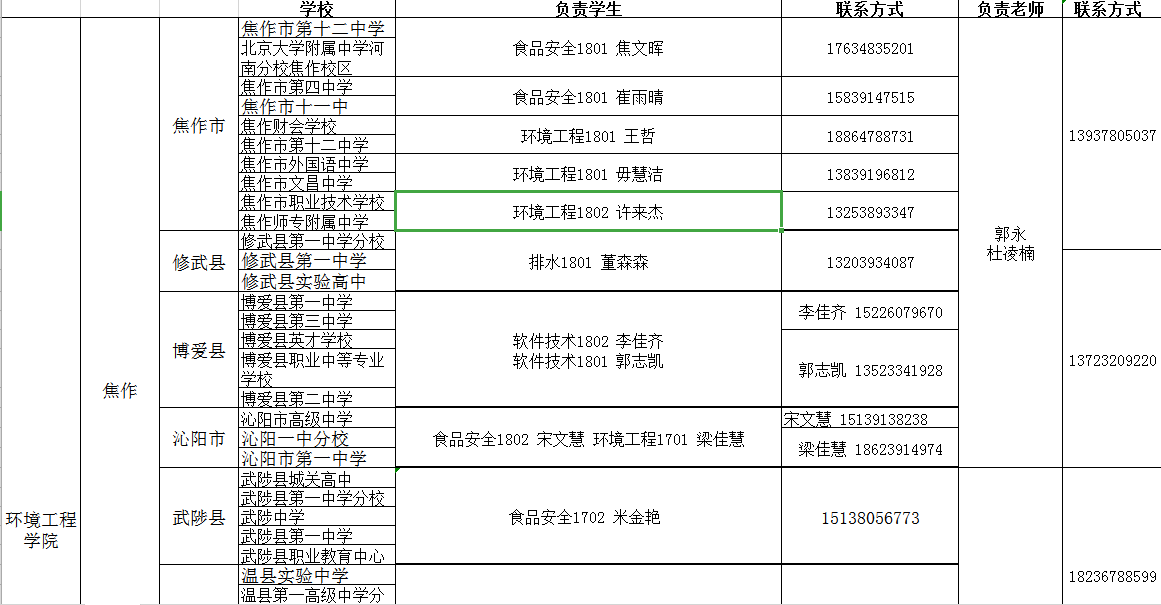 环境工程学院单招宣传负责人及目标学校
