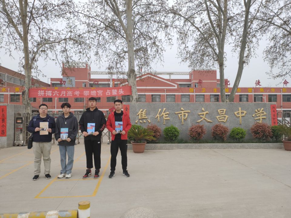 2021年4月7日,环境工程学院校企合作办主任王恺一行四人前往焦作文昌中学开展生源基地招生宣传活动。