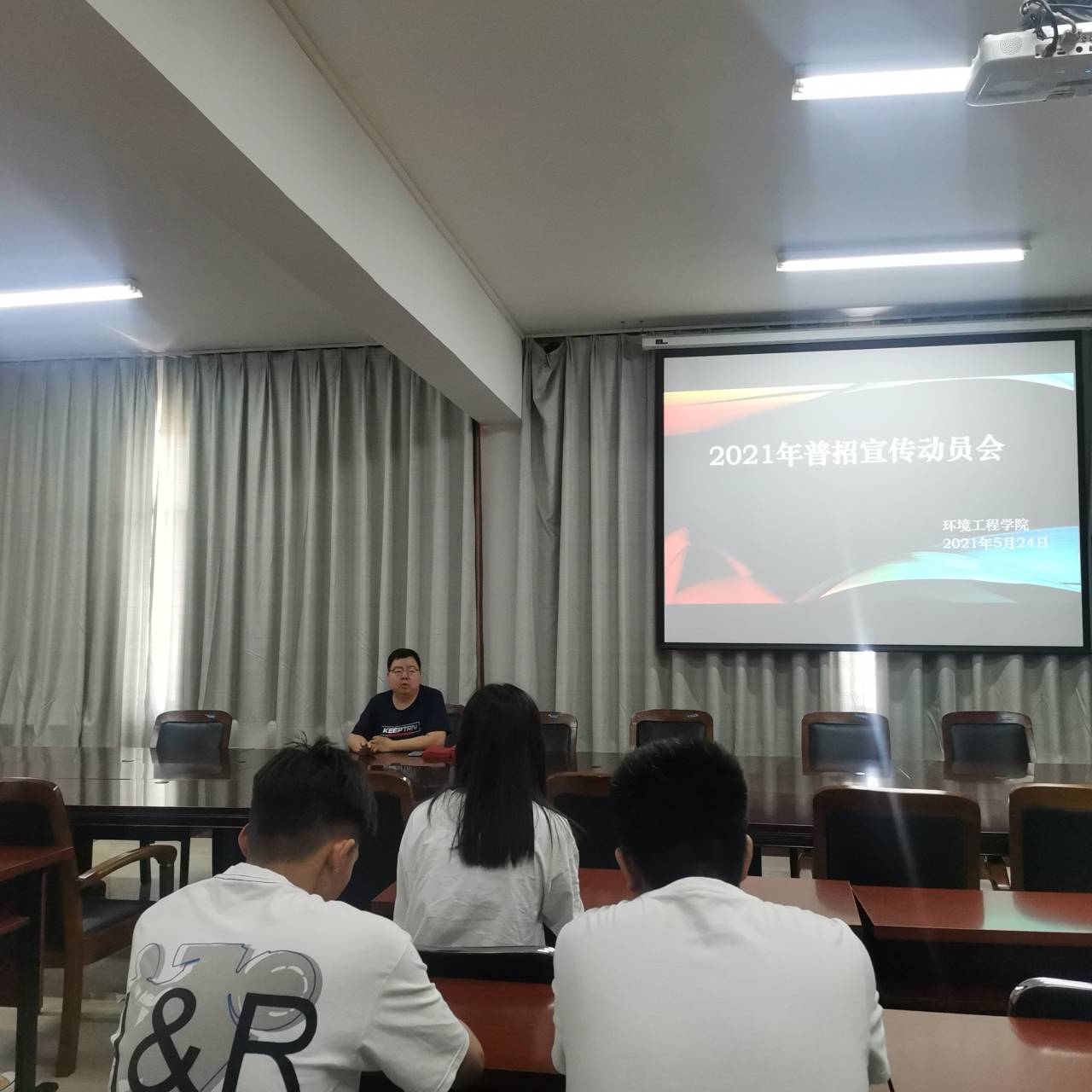5月24日下午,环境工程学院在SY5405会议室召开2021年普招宣传工作动员会。学院校企合作办主任王恺老师主持会议,全体参加此次招生宣传的老师和学生参加了此次会议。
