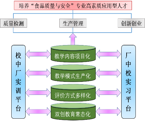 食品质量与安全专业以食品安全检测和食品质量控制为培养目标,通过“一主线、两平台、三层次、四举措”才培养新模式,培养德、智、体、美、劳全面发展,具有良好职业道德、工匠精神、创新意识的高素质技术技能人才。