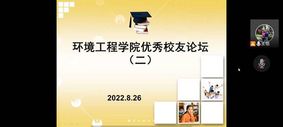 为扎实做好校友工作,凝聚校友力量,共享校友工作经验,助推学校和学院发展,8月26日,环境工程学院第二次优秀校友论坛成功召开。由于疫情原因,本次论坛大会依然还是线上进行,大会由环境工程学院校企合作办主任王恺老师主持,环境工程学院2009级优秀毕业生校友参加了此次线上论坛。