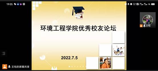 2022年7月5日晚上19:00,环境工程学院通过腾讯会议召开2022年优秀校友论坛会,学院校企合作办主任王恺老师主持此次论坛大会,我院优秀毕业生郝超华、张瑞杰、刘旭辉、李恒等15名知名校友参加了此次论坛大会。