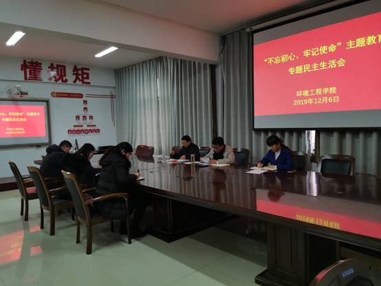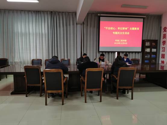 按照《中共黄河水利职业技术学院委员会“不忘初心、牢记使命”主题教育工作实施方案》的总体部署安排,以及《关于召开“不忘初心、牢记使命”主题教育专题民主生活会的通知》要求,2019年12月6日上午,在SX5405党员会议室,召开环境工程学院领导班子专题民主生活会。参加会议的有学院领导班子成员,兼职纪检监察员、总支办主任及教研室主任代表,会议由党总支书记王国英主持。