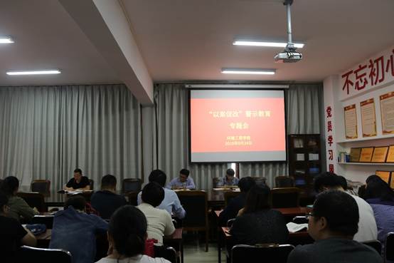 为贯彻落实《黄河水利职业技术学院2019年深化以案促改工作实施方案》,高质量推进坚持标本兼治、深化以案促改工作,结合环境工程学院全面从严治党工作实际,我院于2019年9月24日15:00在SY5404会议室召开“以案促改”警示教育专题会,会议由副院长王振伟主持,我院全体教职工参加了此次专题会。