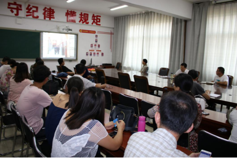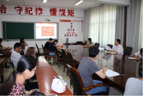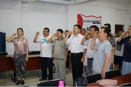 首先,支部组织了全体党员开展了一次重温入党誓词活动。面对党旗,全体党员佩戴党员徽章,举起右手、握紧拳头,由教工支部书记申森带领大家一起,庄严宣誓。通过组织党员开展入党宣誓和重温入党誓词行动,让党员重温入党誓词时的庄严承诺和坚定决心,在党旗下接受心灵的净化和洗礼,牢记共产党员的政治责任和历史使命,不断保持共产党员的先进性,以更加饱满的热情投身各自工作,切实发挥共产党员的先锋模范作用,永葆共产党员的政治本色。