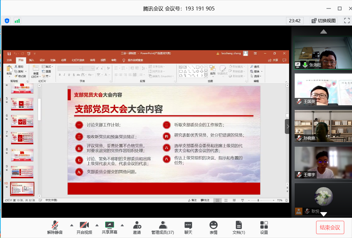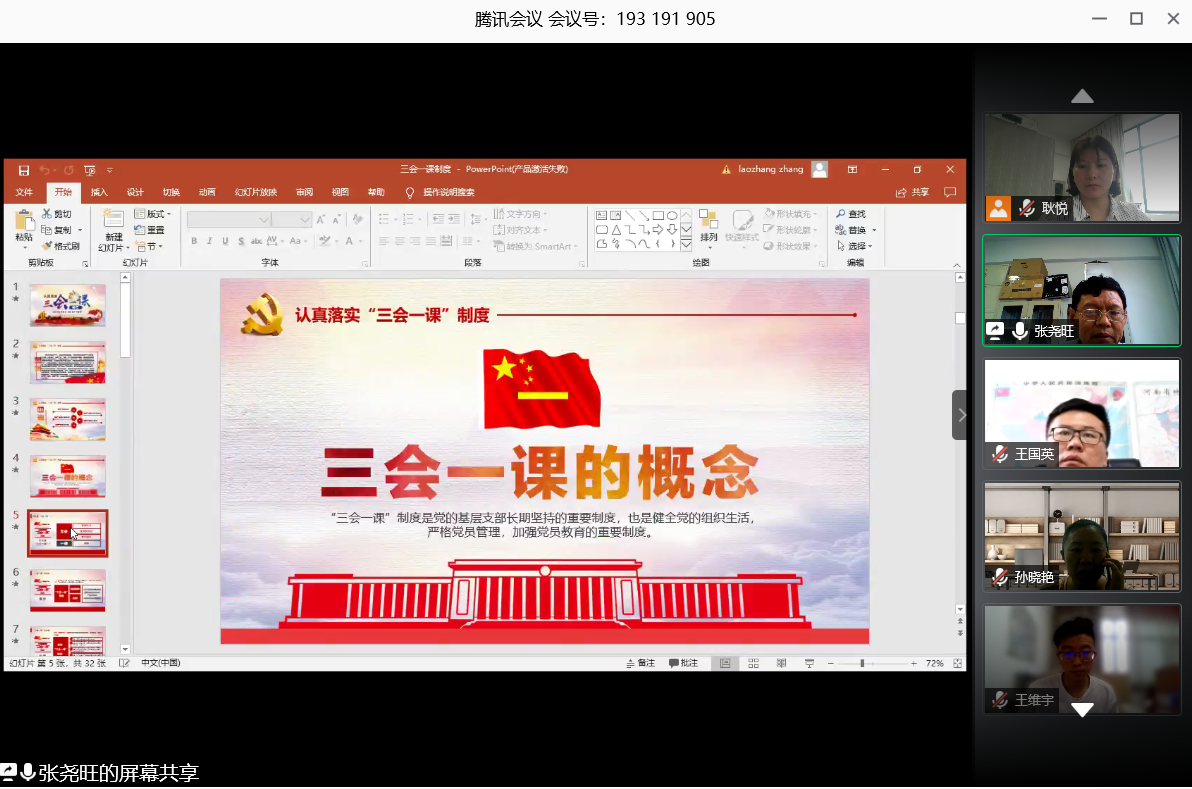 616日下午,环境工程学院副院长张尧旺(主持工作)以“认真落实三会一课制度”为主题,以腾讯视频会议形式为全体教师上了一堂党课。