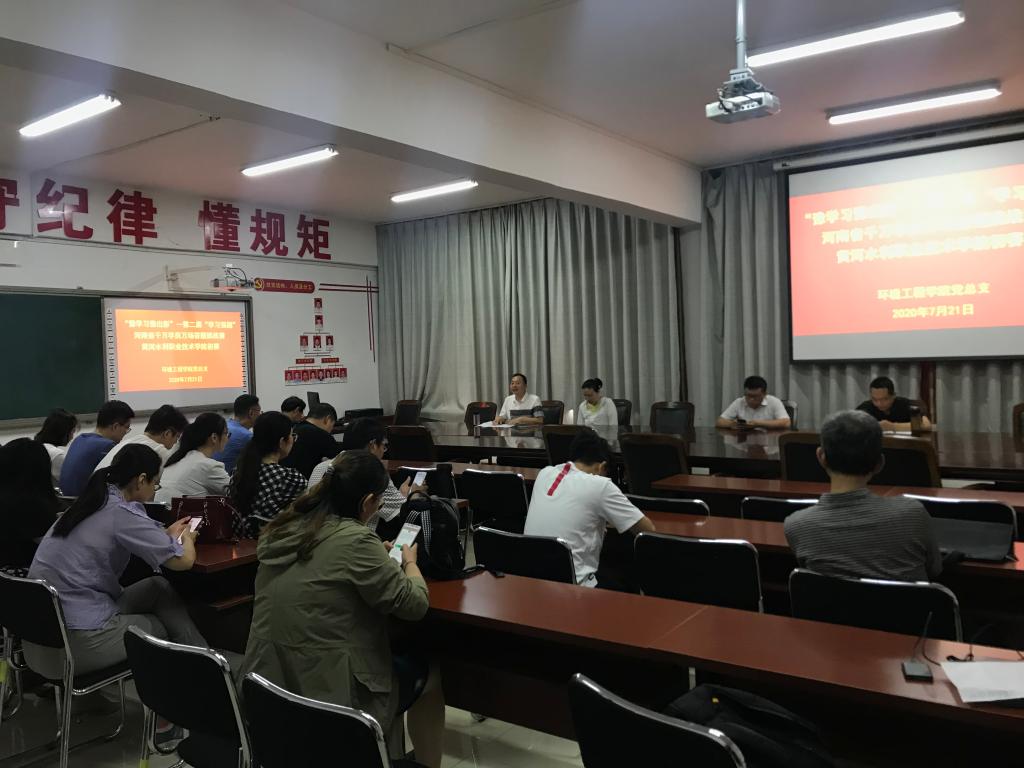 为深入贯彻落实习近平总书记关于加强学习、建设学习大国重要指示精神,充分发挥“学习强国”学习平台在宣传学习、思想引领等方面的重要作用,进一步活跃基层党组织生活,提高广大党员师生的学习积极性,按照河南省教育厅《关于开展“豫学习豫出彩”——第二届“学习强国”河南省千万学员万场答题挑战赛活动的通知》要求,环境工程学院党总支于7月21日下午15:00,开展线下“豫学习豫出彩”——第二届“学习强国”答题挑战赛黄河水利职业技术学院初赛,会议由教工支部书记王振伟主持,学院全体教工党员参加了此次答题挑战赛。