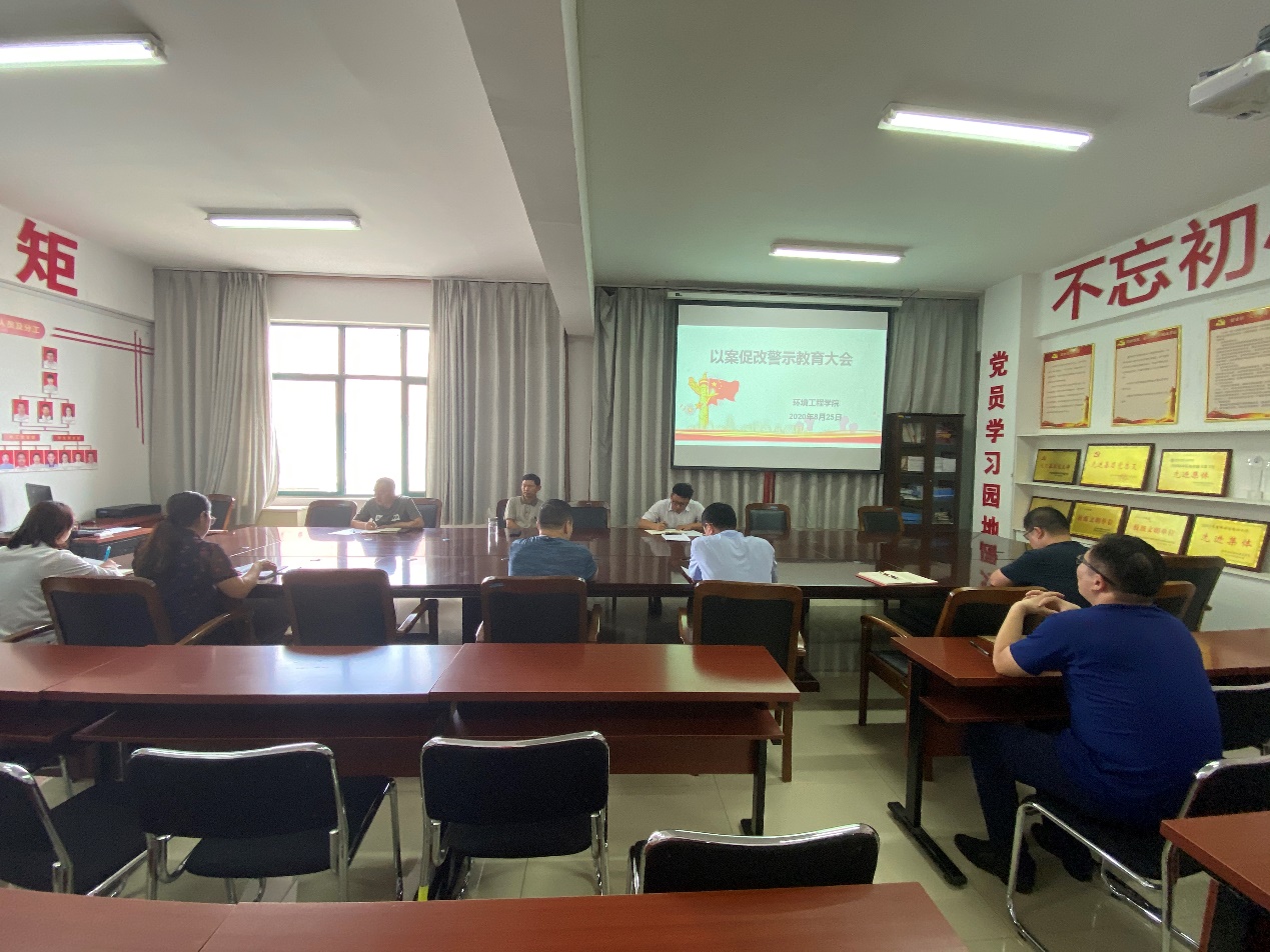 8月25日,环境工程学院在SY5405会议室召开以案促改警示教育专题会议,学院领导班子成员、科级以上干部(含教研室主任)及党总支兼职纪检监察员参加会议,会议由党总支书记王国英主持。