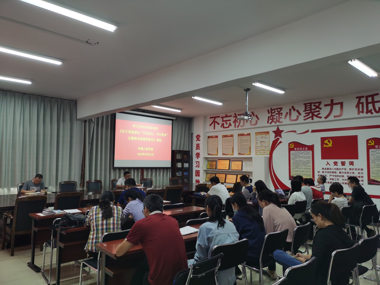环境工程学院组织学习中共中央办公厅印发的《关于巩固深化“不忘初心、牢记使命”主题教育成果的意见》通知