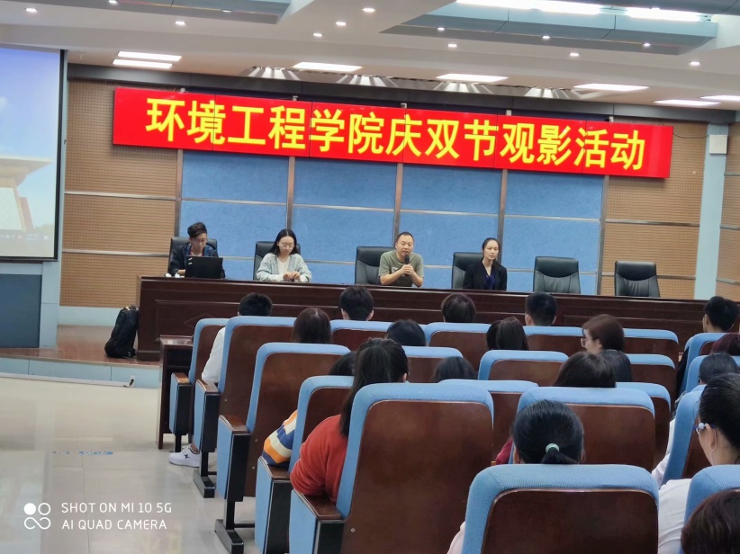 当天,我院活动丰富多彩,在3号实训楼水利报告厅,我院举办了“庆双节观影大会”,环境工程学院副院长王振伟,教师孙书荃博士、陈星博士,辅导员马琳娜、王维宇参加了本次活动。王院长讲到,返校复学以来,同学们都能够遵守与配合学校疫情防控工作的相关规定,努力学习,积极生活,恰逢“国庆节”、“中秋节”到来之际,代表环境工程学院全体教职工,祝同学们双节快乐。