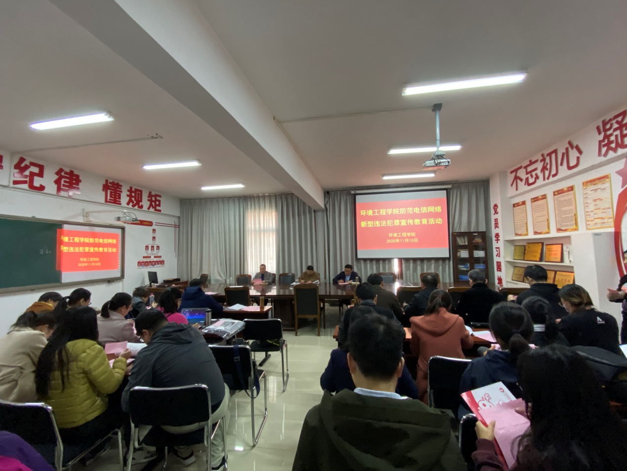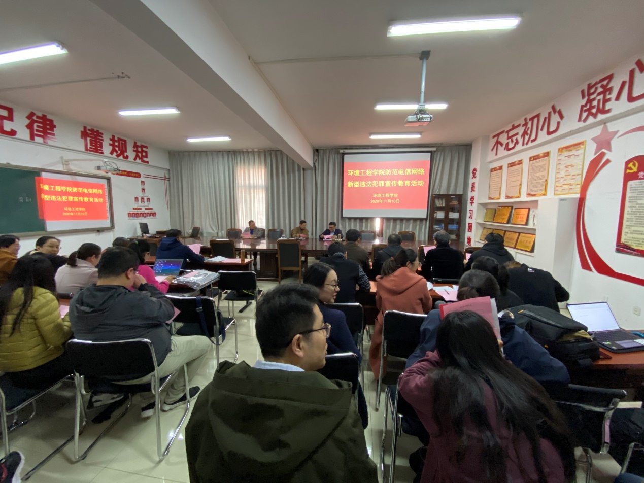按照河南省打击治理电信网络新型违法犯罪工作厅际联席会议办公室《关于组织开展防范电信网络新型违法犯罪集中宣传月活动的通知》要求,大力加强防范电信网络新型违法犯罪宣传工作,提高师生的防范意识贺防范能力 、减少高校电信网络案发事件,环境工程学院于2020年11月10日对全体教职工开展防范电信网络新型违法犯罪宣传教育活动。