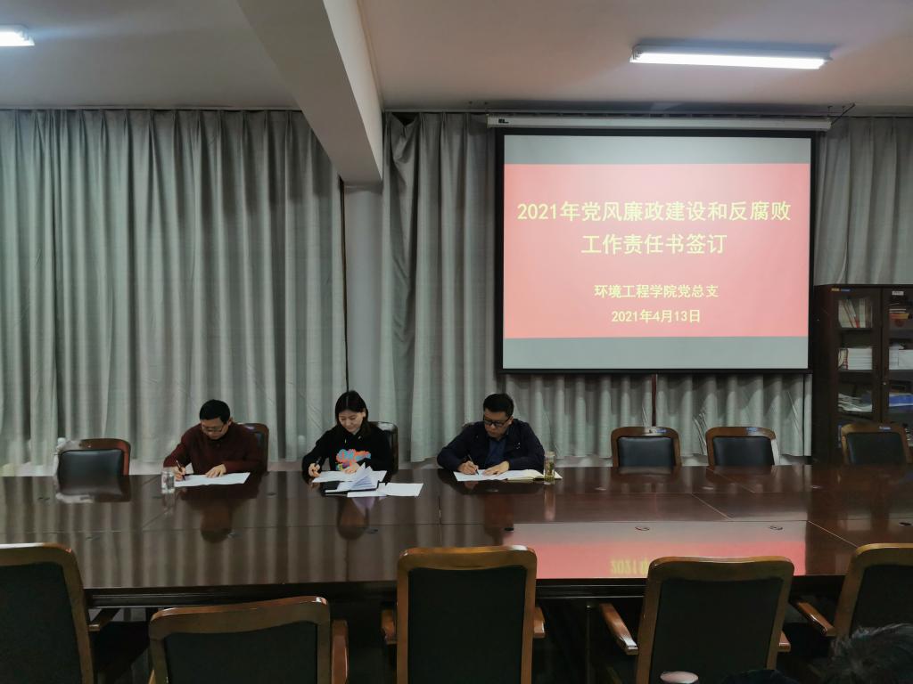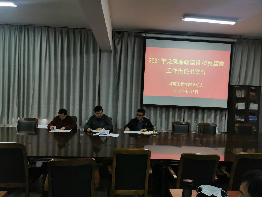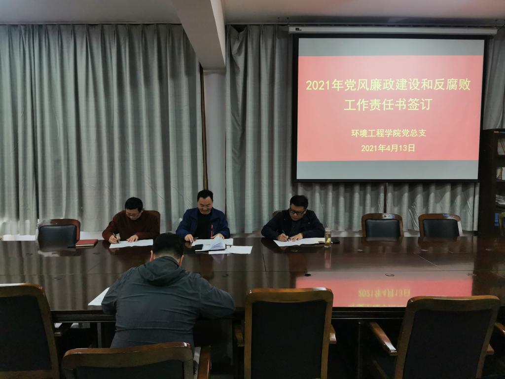 4月13日下午,环境工程学院在SY5405会议室举行2021年党风廉政建设和反腐败工作责任书签订仪式。学院领导班子与科级以上干部签订了责任书。