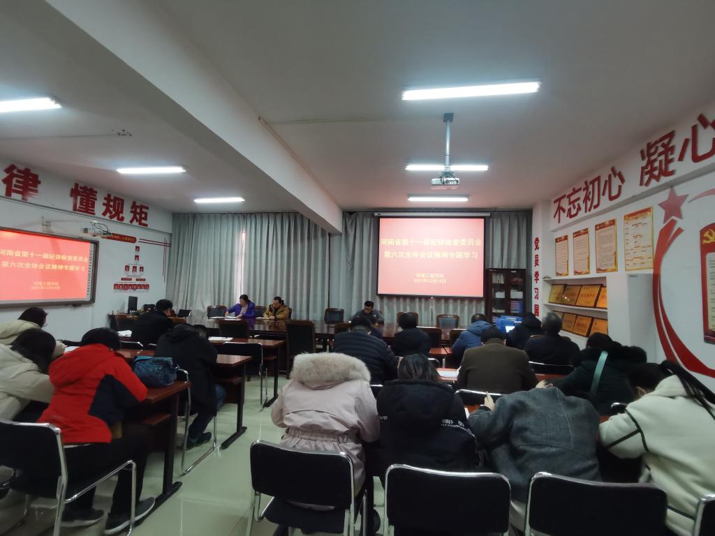 12月14日下午,环境工程学院在SY5405召开政治理论专题学习会议,深入学习中国共产党第十九届中央纪律检查委员会第五次全体会议精神及河南省第十届纪律检查委员会第六次全体会议精神,全院教职工参加了此次会议。会议由副院长王振伟主持。